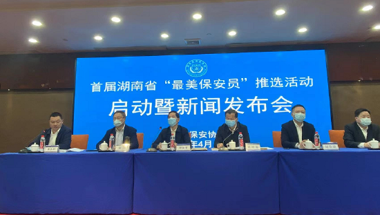 2022年4月19日上午,由湖南省保安協(xié)會主辦、湖南日報社協(xié)辦的首屆湖南省“最美保安員”推選活動啟動儀式暨新聞發(fā)布會在長沙召開,省保安協(xié)會會長譚和平、省保安協(xié)會顧問兼專家委員會主任委員趙劍、湖南省物業(yè)管理行業(yè)協(xié)會書記封浩建、省公安廳治安總隊內(nèi)保支隊長兼省保安協(xié)會秘書長張小兵、省保安協(xié)會專職副秘書長常自力、十余家新聞媒體出席發(fā)布會。發(fā)布會由省公安廳治安總隊副總隊長、二級警務(wù)專員兼省保安協(xié)會監(jiān)事長劉繪錦主持。