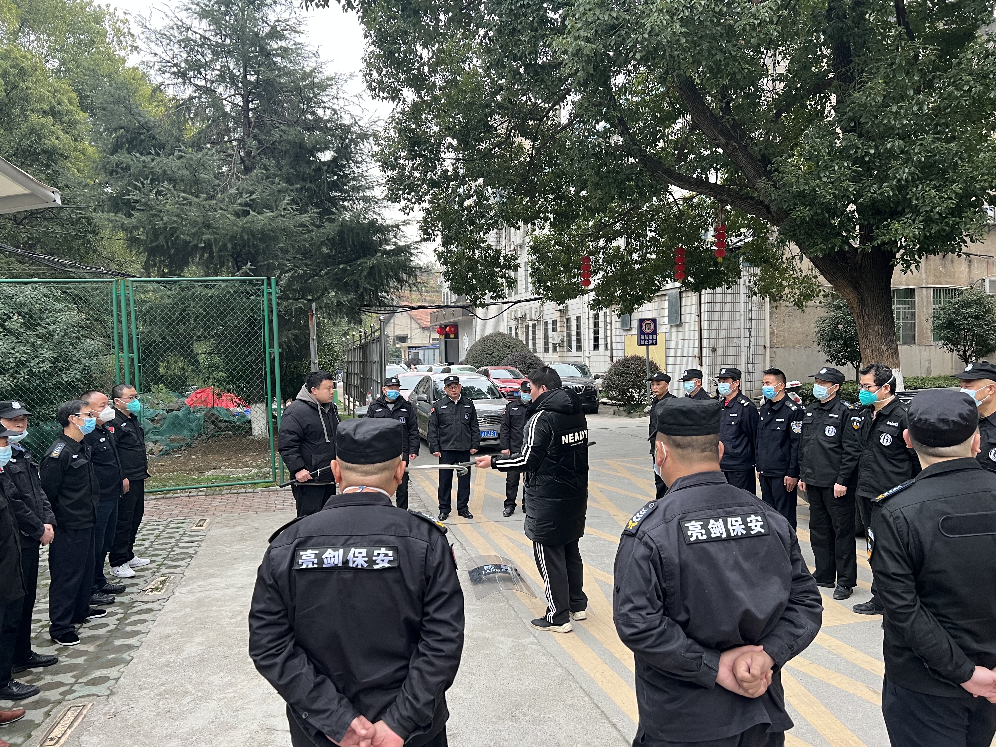 為進(jìn)一步加強醫(yī)院治安安全防范工作,提升安保隊員的防衛(wèi)實戰(zhàn)技能,2023年2月21日上午,懷化亮劍保安服務(wù)有限公司經(jīng)理王珺等人帶領(lǐng)懷化市第四人民醫(yī)院全體安保隊員進(jìn)行反恐防暴技能指導(dǎo),現(xiàn)場開展實戰(zhàn)演練,講解示范鋼叉、盾牌等防暴器械的使用 ,并通過應(yīng)急演練讓大家快速掌握處理突發(fā)事件的方法,演練過程緊張有序、配合密切,達(dá)到預(yù)期效果。