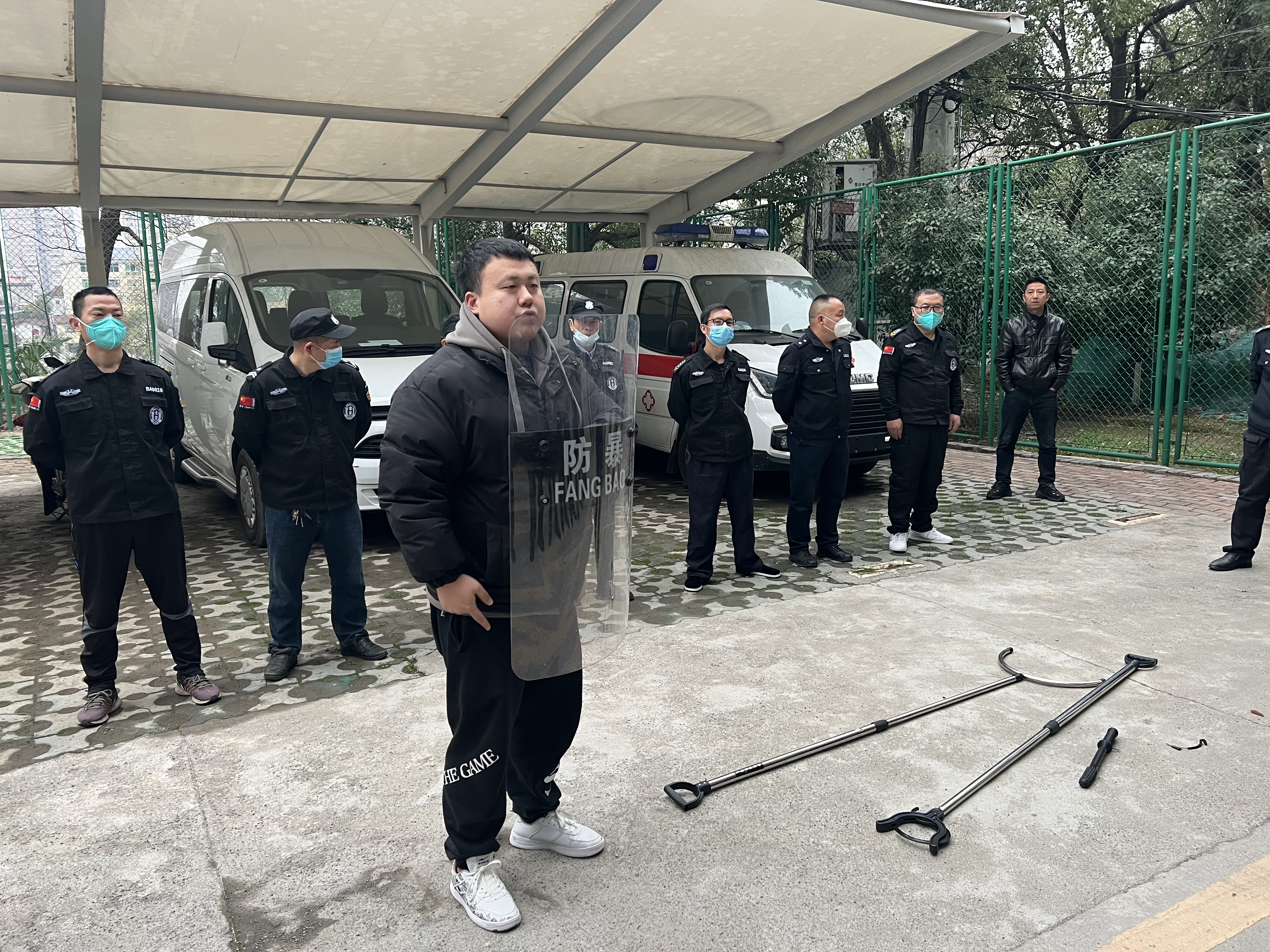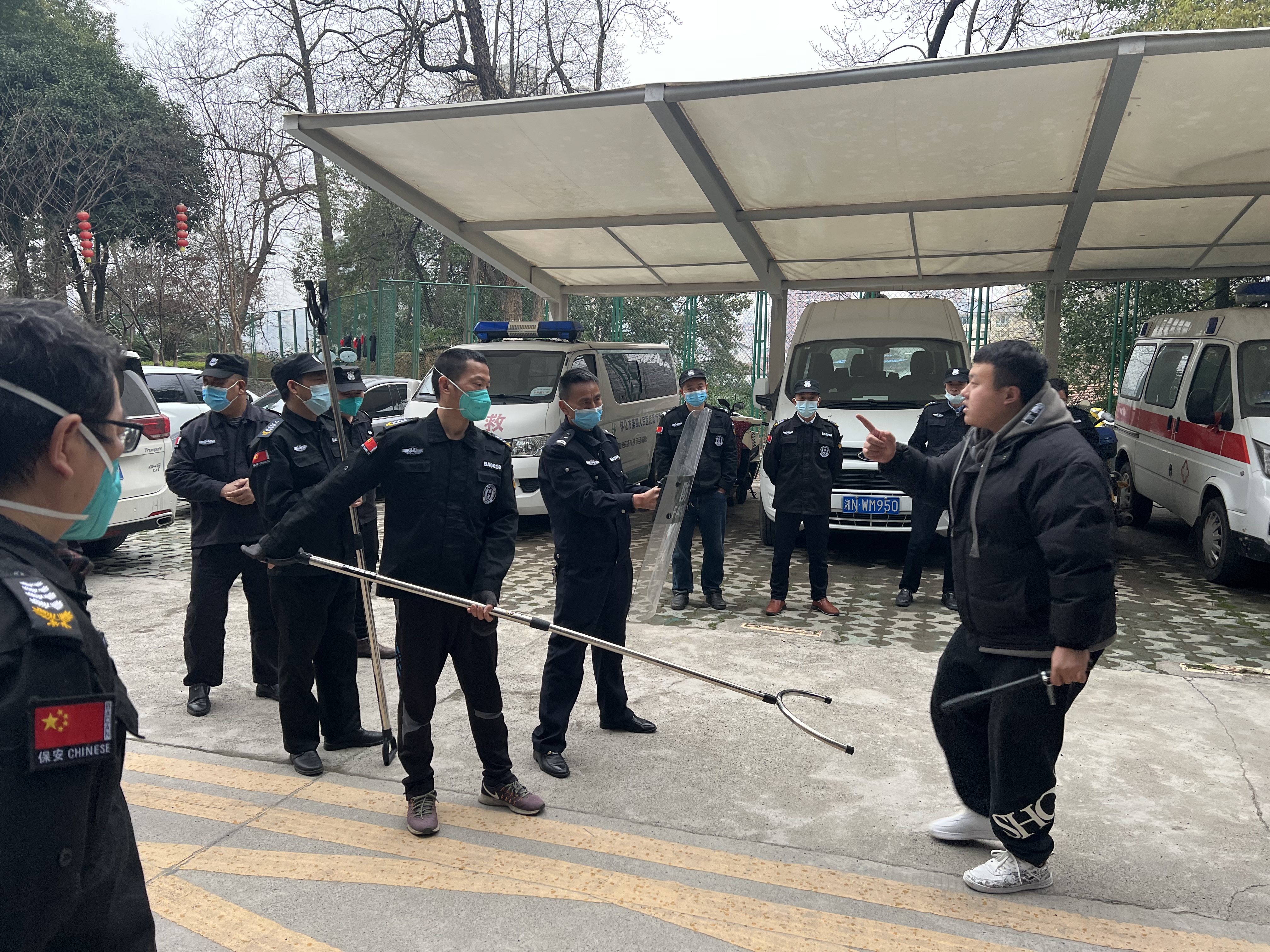 防患于未然——懷化市第四人民醫(yī)院安保隊員開展反恐防暴器械使用演練