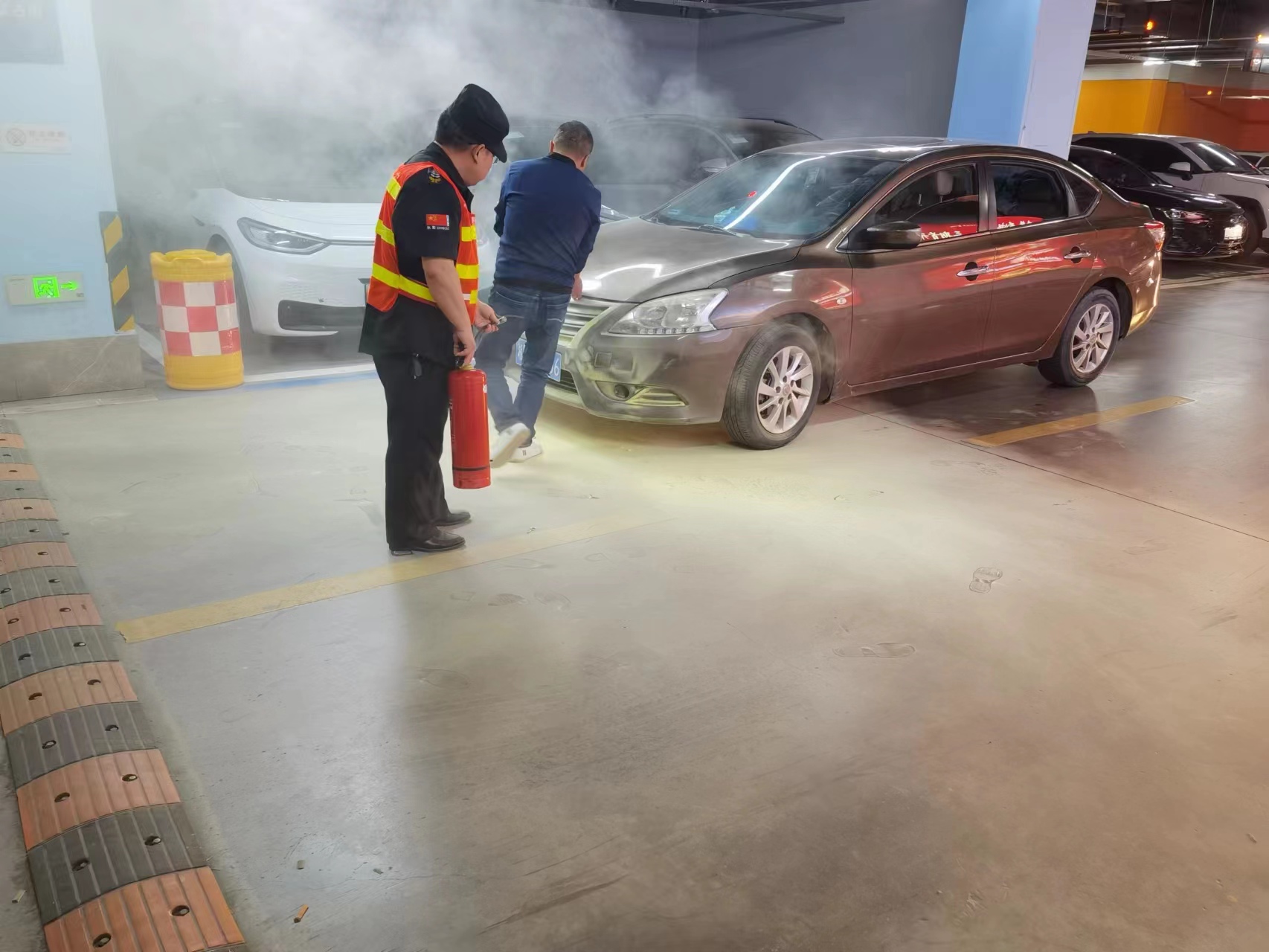 2023年4月30日晩上20點(diǎn)05分左右一車主駕駛車輛駛?cè)霊鸦喧Q城區(qū)萬(wàn)達(dá)廣場(chǎng)停車場(chǎng)2號(hào)道口時(shí),車頭的車燈處突燃明火,金劍保安公司駐萬(wàn)達(dá)廣場(chǎng)保安員潘仁斌臨危不亂立即叫停車輛,就近打開(kāi)消火栓箱取出滅火器對(duì)準(zhǔn)火源成功將火熄滅,及時(shí)化解了一起火災(zāi)的隱患,對(duì)車輛未造成較大損傷,車主對(duì)值班員的應(yīng)急處置行為表示非常贊賞及感謝。在此提醒廣大車主,天氣炎熱,一定要做好行車前車輛檢查工作,預(yù)防車輛自燃。