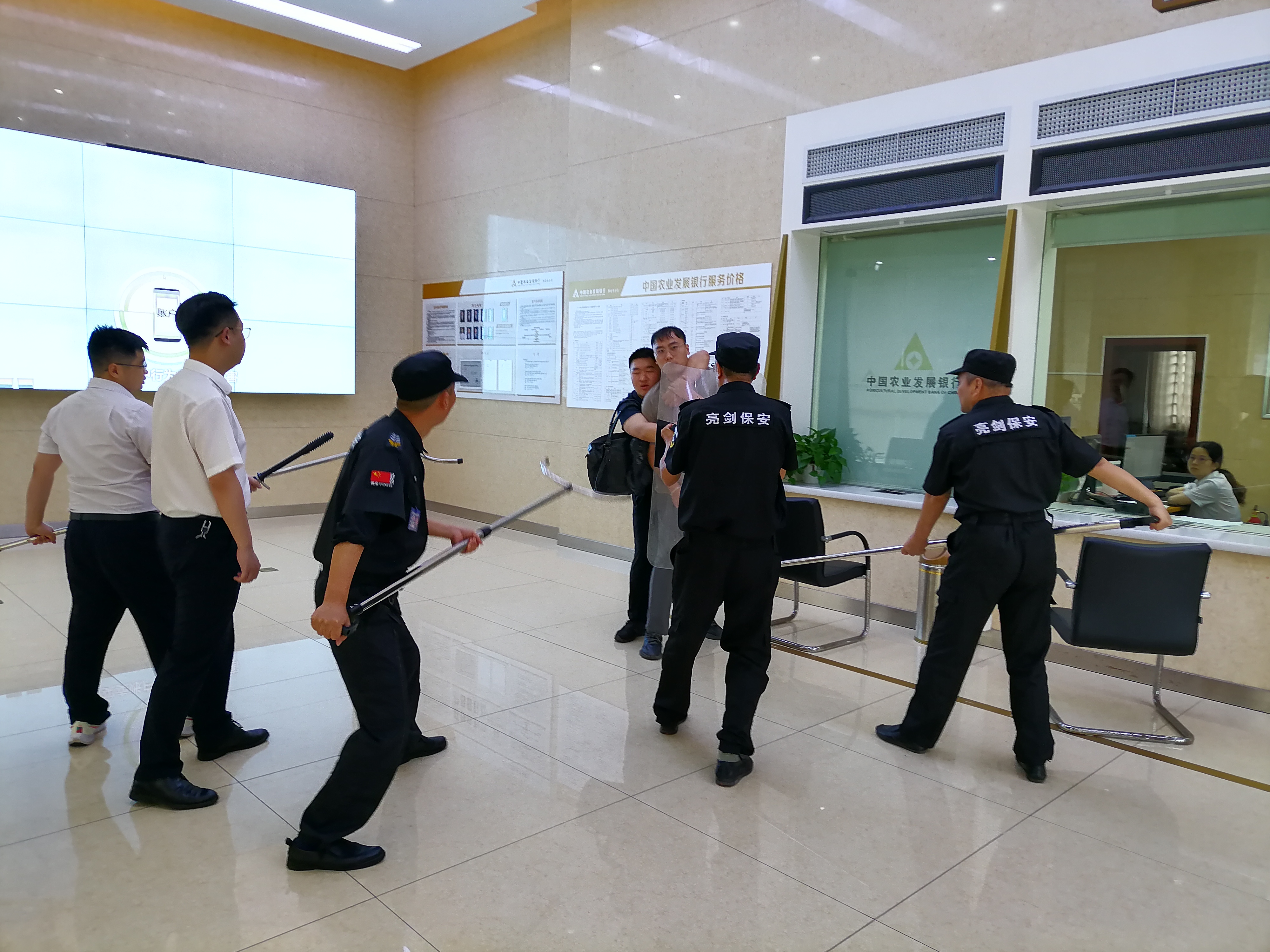 分行辦公室/安全保衛(wèi)部、分行各職能科室、分行營業(yè)部相關(guān)領(lǐng)導和人員,懷化亮劍保安服務(wù)有限公司相關(guān)管理人員、派駐分行機關(guān)、營業(yè)部全體保安隊員、參加現(xiàn)場演練。
