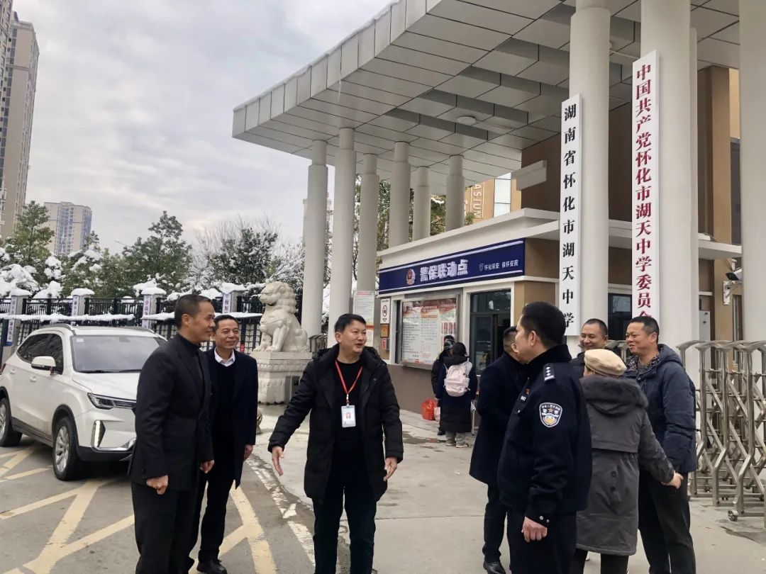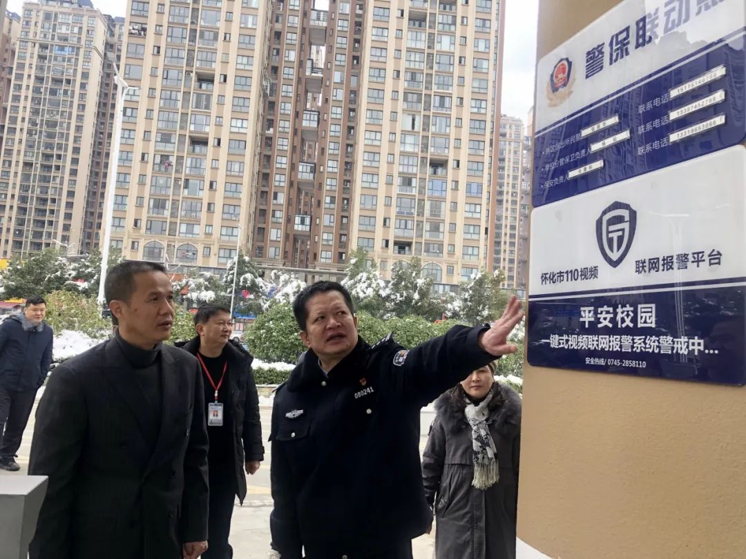 隨后蔣開紅秘書長一行又對懷化市保安服務有限責任公司申報的湖南省保安服務業(yè)“示范安保項目:懷化市湖天中學“護校安園3+保安示范崗”進行現(xiàn)場調(diào)研。通過現(xiàn)場調(diào)研以及與湖天中學校方各級領導的交流,對懷化市保安服務有限責任公司在“護校安園”安保服務中將校園保安崗打造成警保聯(lián)動點、護學崗、雷鋒服務崗三合一的安保服務模式的創(chuàng)新舉措表示高度的贊賞。