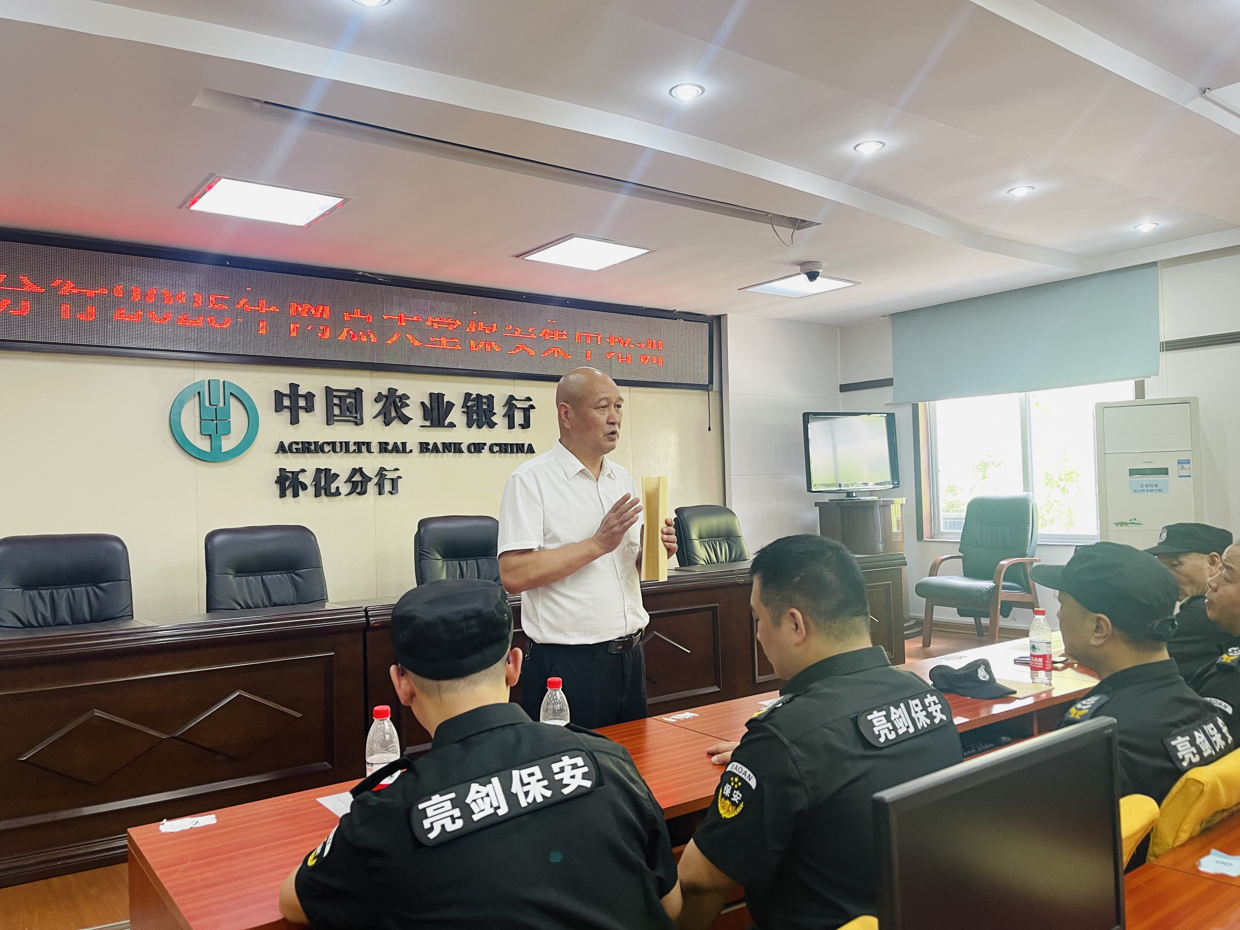全員斗酷暑,實戰(zhàn)練兵忙。懷化金劍亮劍保安服務有限責任公司堅持以練為戰(zhàn),以戰(zhàn)促訓,近日在中國農(nóng)業(yè)銀行懷化分行舉辦銀行大堂保安集中培訓。該公司全體管理人員、公司派駐懷化城區(qū)各支行網(wǎng)點54名大堂保安參訓。