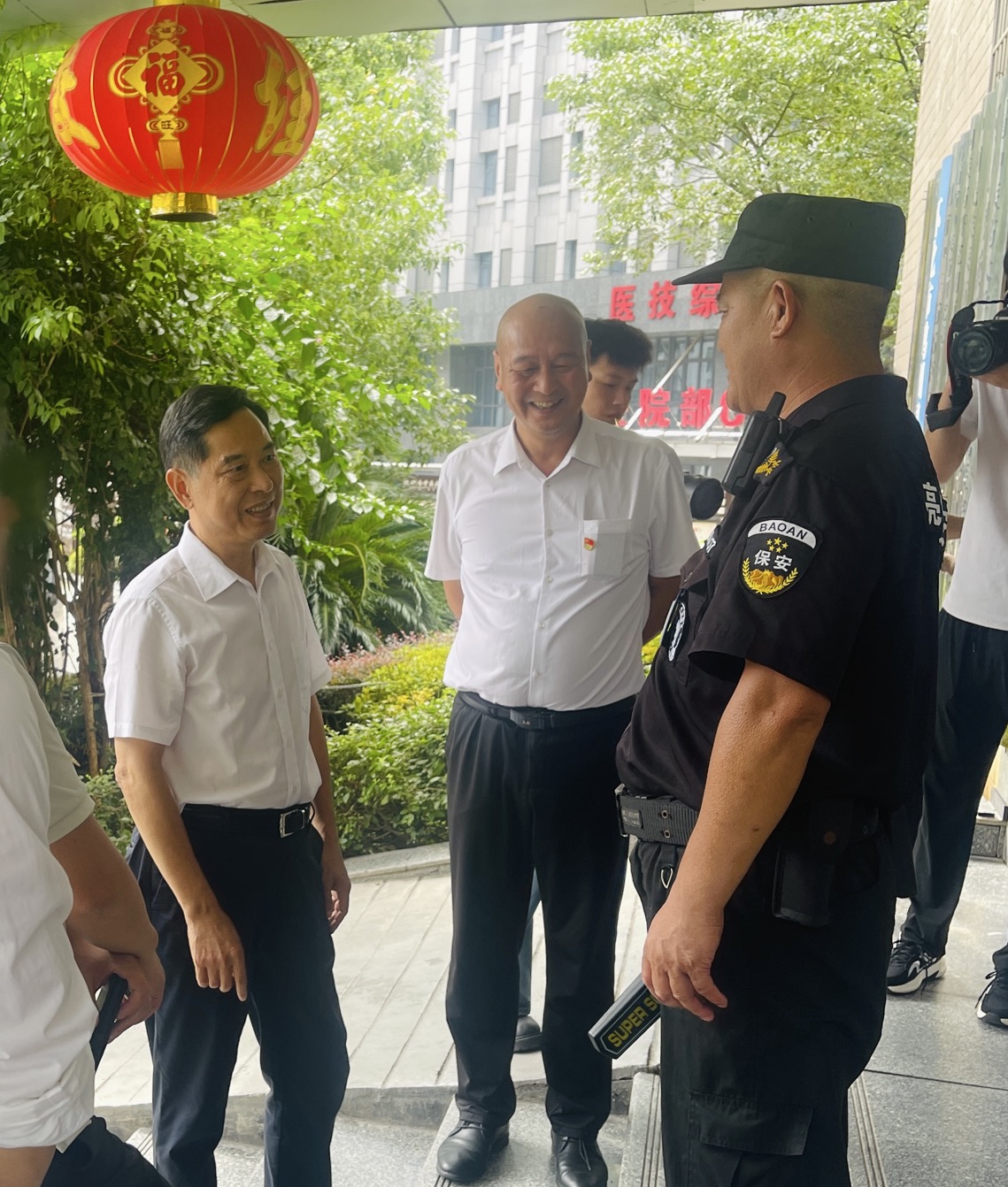 下午,溫暖的氛圍持續(xù)蔓延。譚和平會長等領(lǐng)導不辭辛勞,專程來到我公司派駐懷化市中醫(yī)醫(yī)院的保安崗位,對所有堅守在此的保安人員進行了親切慰問。在懷化市中醫(yī)醫(yī)院,領(lǐng)導們仔細察看了保安人員的工作環(huán)境,了解他們的值班安排、安全保障措施等情況。當看到保安人員們精神抖擻、認真負責地堅守在各自崗位上,為醫(yī)院的正常秩序和患者的安全保駕護航時,領(lǐng)導們給予了高度贊揚。他們與保安人員親切交談,叮囑大家在做好本職工作的同時,一定要注意自身安全,勞逸結(jié)合。一句句暖心的話語,一個個關(guān)切的眼神,讓堅守在一線的保安人員們深受感動,大家紛紛表示,絕不辜負領(lǐng)導的期望,將以更高的責任心和使命感做好醫(yī)院的安保工作,為醫(yī)患營造安全、和諧的環(huán)境。